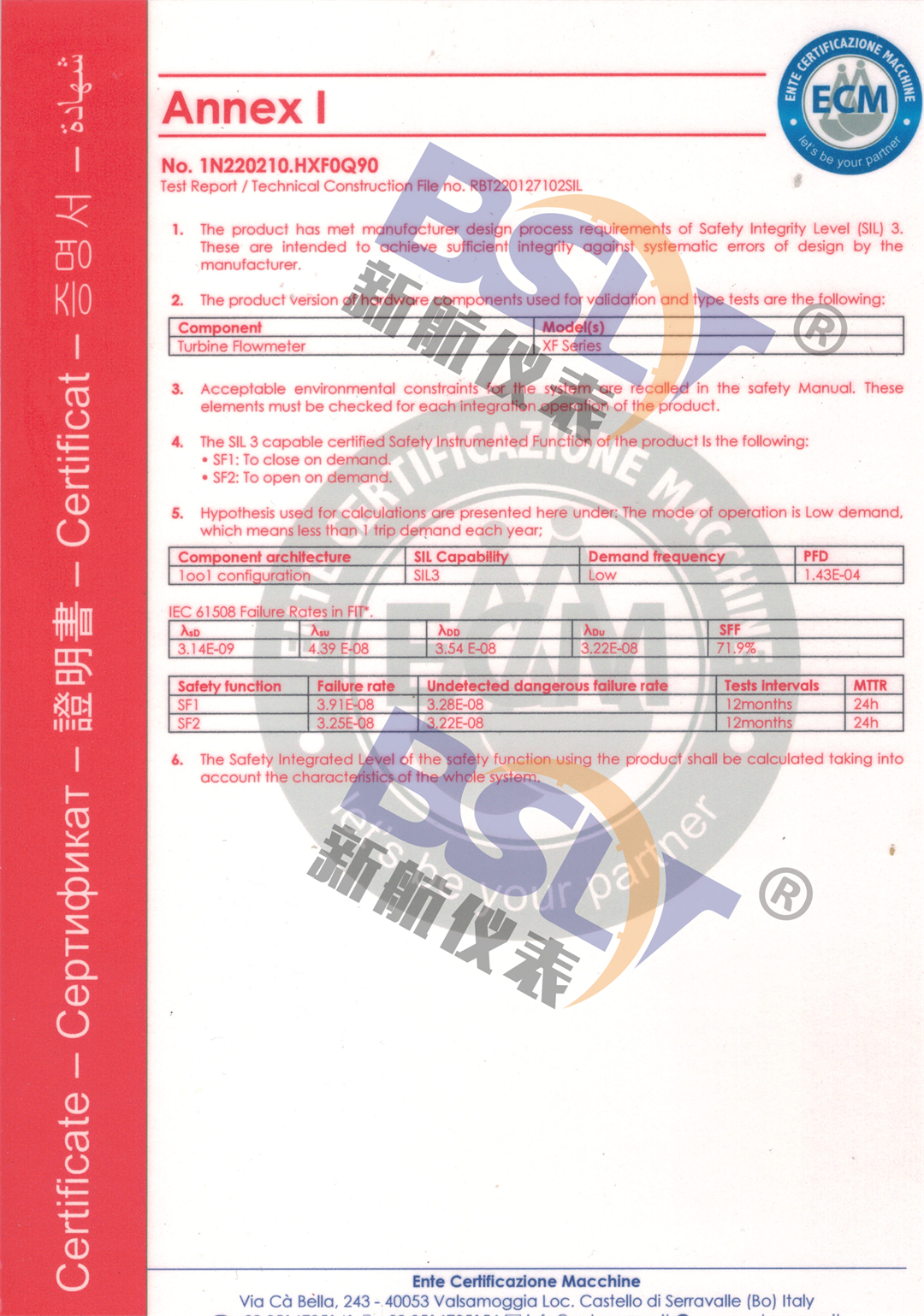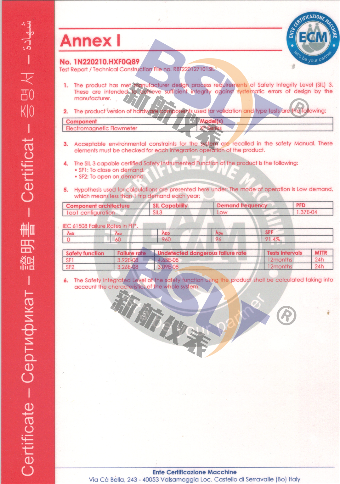 電磁流量計sil證書2