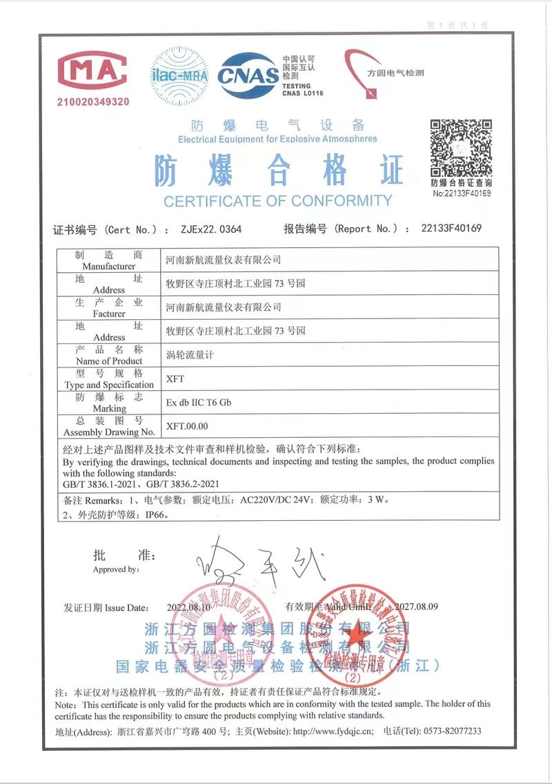 渦輪流量計sil證書1