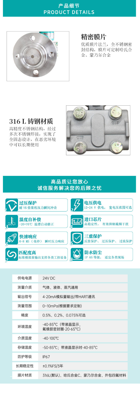壓力變送器在使用過(guò)程中難免出現(xiàn)各種各樣的故障,其影響因素眾多,例如壓力變送器內(nèi)隔片與傳感原件間存在灌充液漏,零點(diǎn)和量程偏移、輸出不穩(wěn)定等都會(huì)導(dǎo)致壓力變送器精度下降甚至發(fā)生損壞;天氣因素也會(huì)對(duì)變送器造成影響,如雷擊會(huì)損壞變送器膜盒的電路、導(dǎo)致無(wú)法通訊;潮濕的環(huán)境會(huì)損壞線路;變送器量程選擇不合理會(huì)造成感壓元件不可逆的變形。