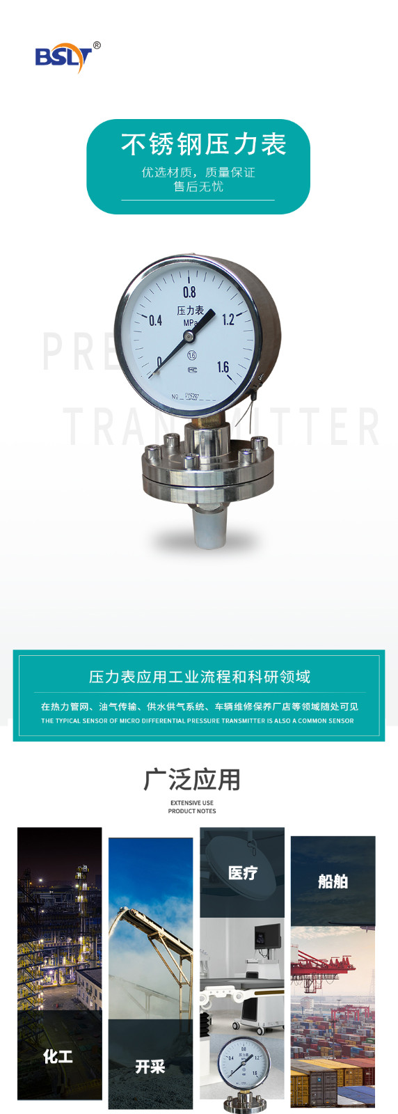 壓力表按其指示壓力的基準不同,分為一般壓力表、絕對壓力表、差壓表。一般壓力表以大氣壓力為基準;絕壓表以絕對壓力零位為基準;差壓表測量兩個被測壓力之差。