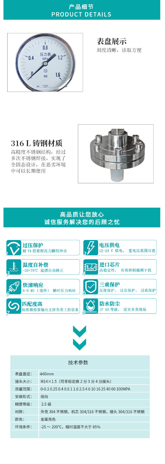壓力表按其測量精確度,可分為精密壓力表、一般壓力表。精密壓力表的測量精確度等級分別為0.1、0.16、0.25、0.4級...